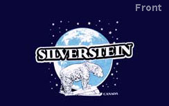 Silverstein’s Polar Bear tee has a Moon surrounded by stars and Silverstein written across it and a polar bear on a rock and Canada on it done in White. Baby blue, and Navy blue